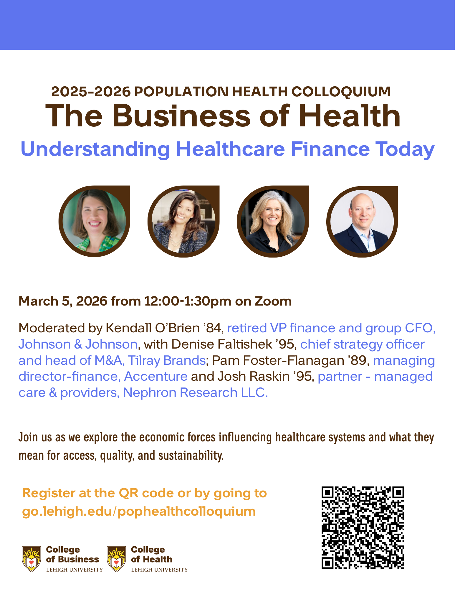 Guest speakers include Denise Faltishek ’95, chief strategy officer and head of M&A at Tilray Brands; Kristine Shira ’99, vice president of people at Optum; Pam Foster-Flanigan ’89, managing director-finance with Accenture and Josh Raskin ’95, research analyst at Nephron Research LLC.
